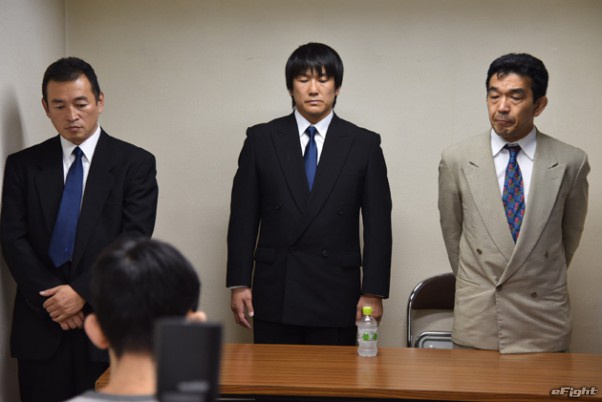 会見に出席した(左から)パラエストラ東京・若林太郎氏、パラエストラ千葉ネットワーク・鶴屋浩代表、パラエストラ・ネットワーク・中井祐樹総代表、