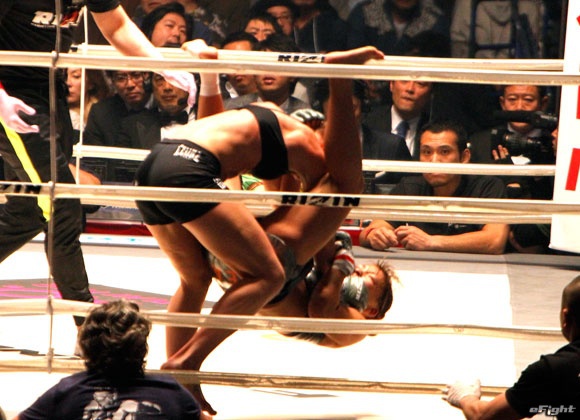 RIZINのMMAデビュー戦ではRENAがイリアーナに飛び付き腕十字の大技を極めた