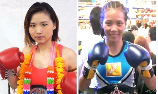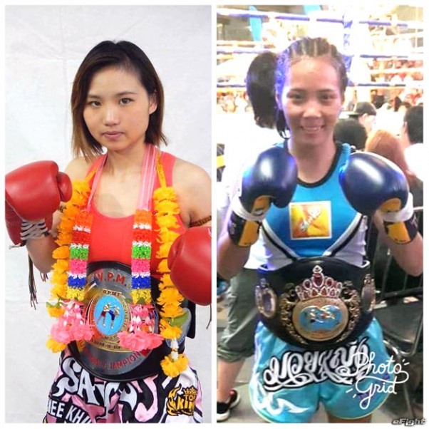 “天才ムエタイ少女”伊藤紗弥(左)が世界二階級制覇を狙ってサオ・スコータイ(右)と王座決定戦
