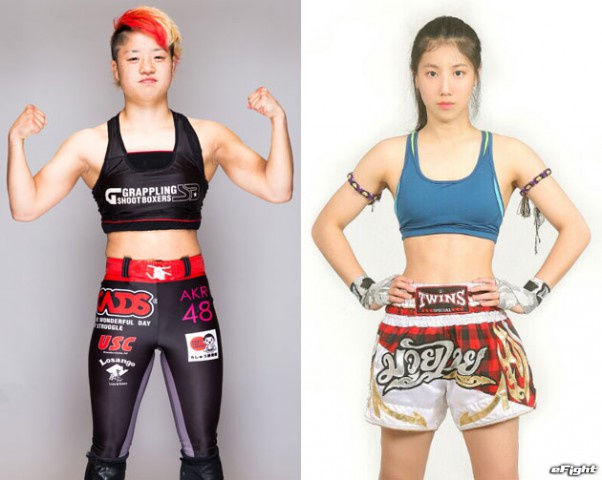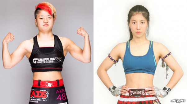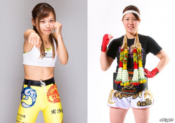 超アグレッシブファイトで会場を沸かせるMISAKI(左)は、女子ムエタイの新鋭・奥脇(右)と対戦