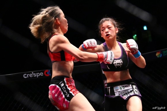 女王しなしさとこ(左)を相手に、プロデビュー戦で高校1年生とは思えない強さを見せたイェジ(右)