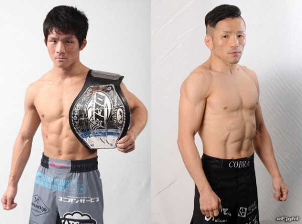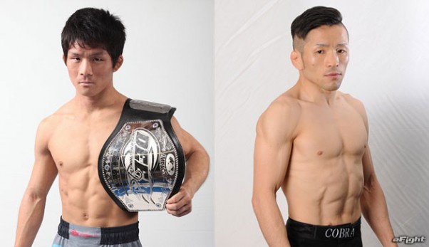 初代王座決定トーナメント1回戦で激闘を展開したサトー(左)と越智(右)がタイトルマッチで再戦