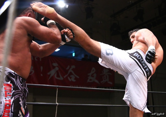 2015年10月、DEEPメガトン級王者決定戦でハイキックを見舞うシング