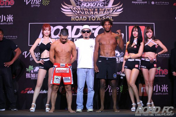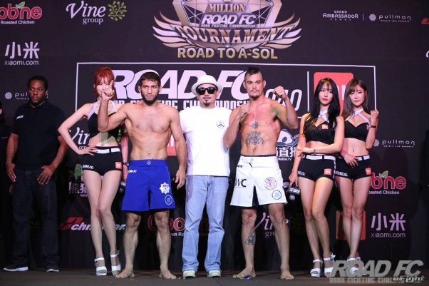 フランスのマンスール・ベルナウイ(右)と対戦するキム・チャンヒョン(左)も計量オーバー