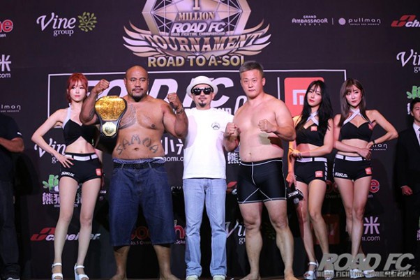 2度目の防衛戦を迎える王者マイティ・モー(左)と挑戦者のカン・ドングク(右)