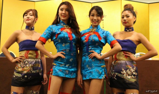中国から2名ラウンドガール(中央の2名)が派遣された。両サイドは『Krush』のラウンドガール。