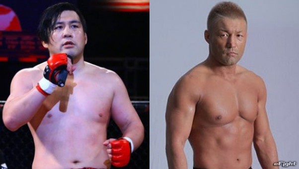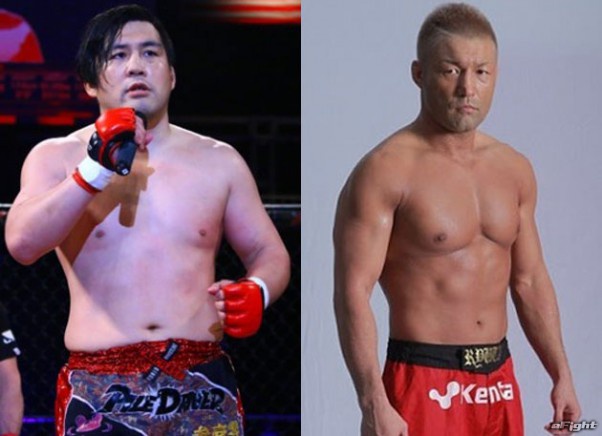2月、プロレスラー・佐藤(左)は全身刺青男・アイビー(右)を右フック一発でKOした