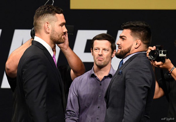 メインイベントに出場するワイドマン(左)と対戦するガステラム(右)