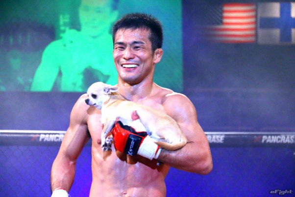 2月大会で愛犬と勝利を喜ぶ翔兵
