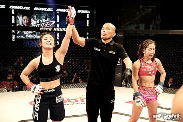 3月の女子大会で、しなし(右)に勝利したイェジ(左)