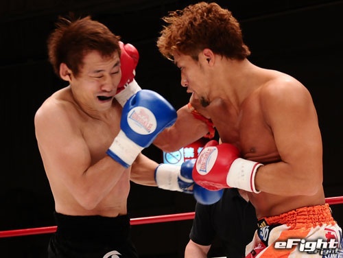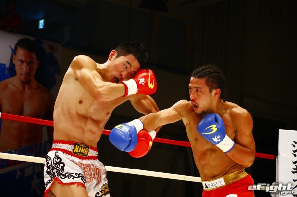 ジュンフェン(左)のパワーに序盤は押されたが、後半はパンチで盛り返した卜部(右)