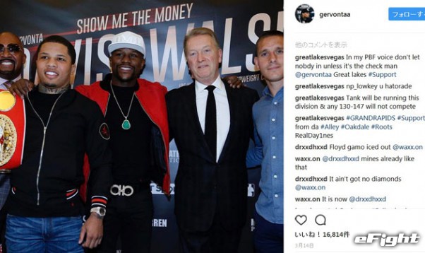ガーヴォンタ・デイヴィス(左)とメイウェザー(中央)。デイヴィスはメイウェザー・プロモーションの選手。本人のInstagramより