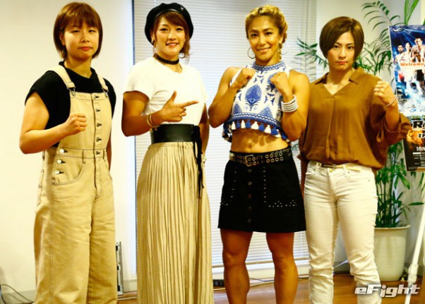 会見に同席したRENA(左から2番目)と山本(右から2番目)。大みそかに行われるトーナメント決勝戦での再戦実現なるか