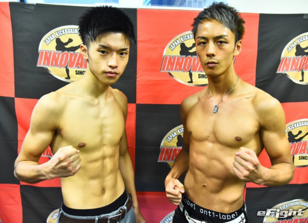 INNOVATIONバンタム級王座決定戦(53.52㎏契約)で対戦する岩浪悠弥(左)と若月勇磨(右)