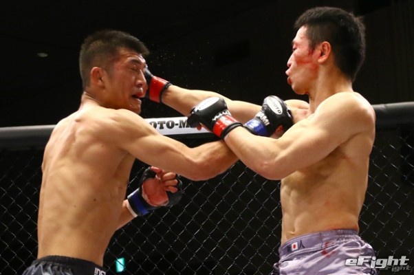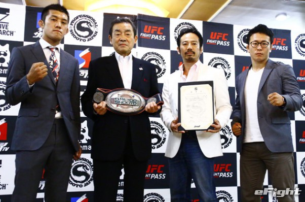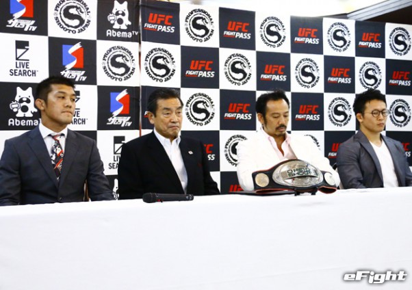 第10代修斗世界バンタム級チャンピオン決定戦で対戦する佐藤将光(左端)と石橋佳大(右端)
