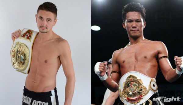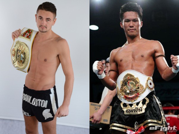 ISKAムエタイルール世界スーパーライト級タイトルマッチで対戦する王者ステファン・キャンドル(左)と挑戦者・大石駿介(右)