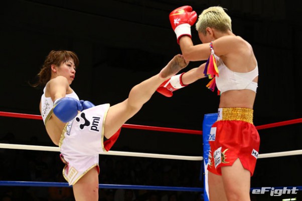 女子8冠王のLittleTiger(右)をわずか6戦目で破った平岡(左)