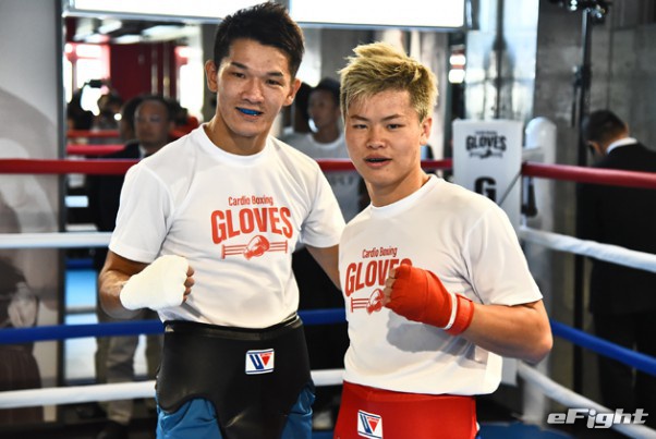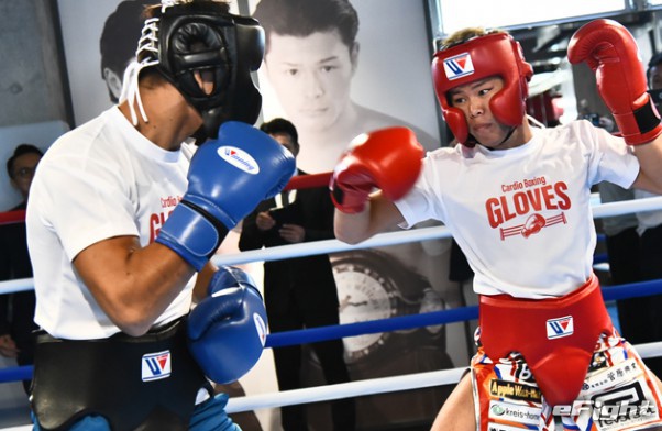 那須川(右)と尾川(左)がバチバチのスパーリングを披露した