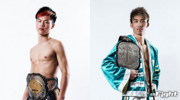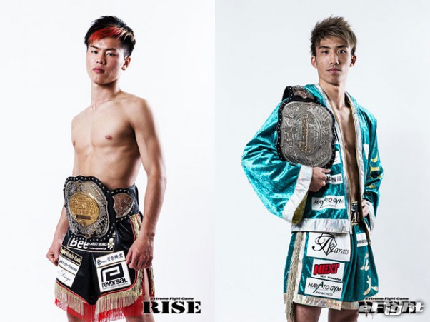 那須川天心(左)と野辺広大(右)、現在のRISEをけん引する若きエース2人がエキシビションながら拳を交える