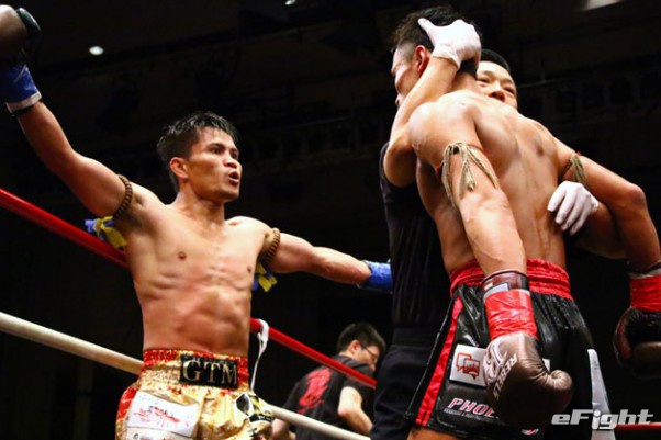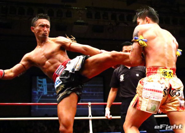 ラウンド終了のゴングが鳴った後、パンチを放ったスアレックに梅野は怒りを露に