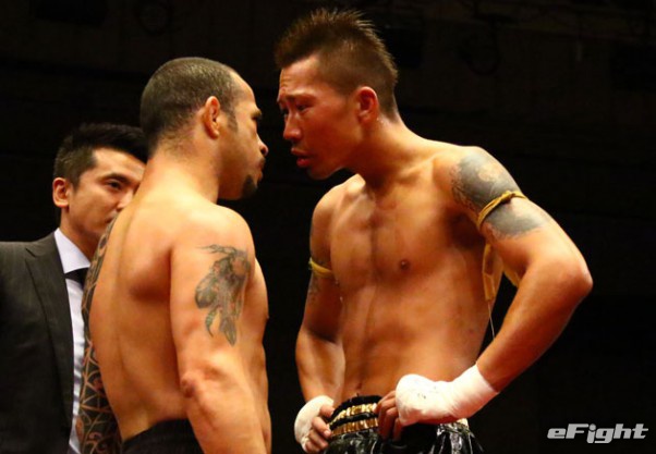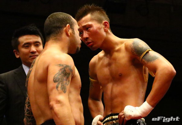 大谷(右)のパンチをもらう場面が多かったが、左フックでダウンを奪って勝利