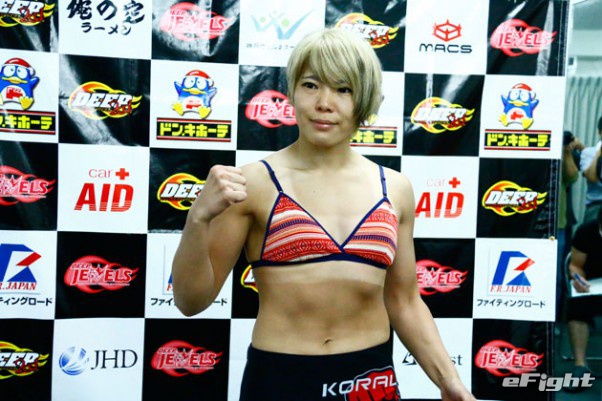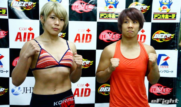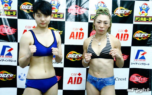 初参戦の村田(右)を迎え撃つ奈部(左)は柔道でインターハイベスト8の実績を持つ