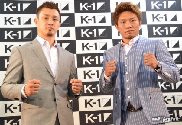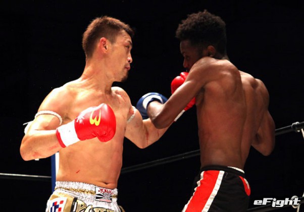 左右田(左)との壮絶な打撃戦を制し、初防衛に成功した中澤(右)