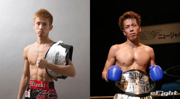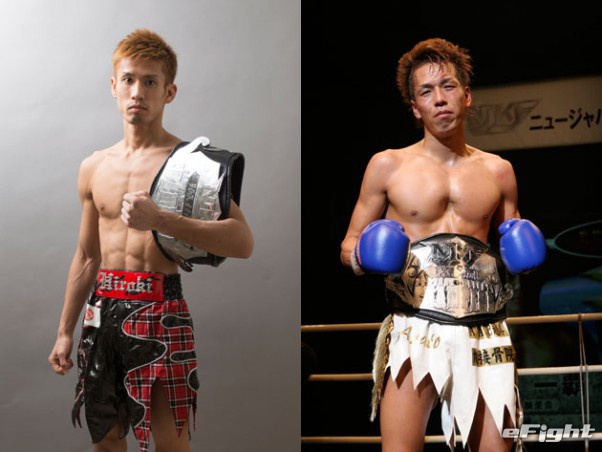 スーパーバンタム級王者・前田(左)とフェザー級王者・新人(右)のNJKF王者対決