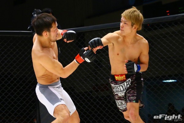 王者・高橋(左)が青井(右)を挑戦者に迎えての初防衛戦