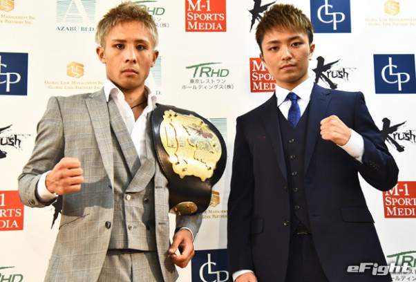 Krush -58kgタイトルマッチで対戦する王者・小澤海斗(左)と挑戦者・西京春馬(右)