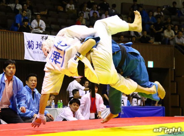 昨年秋、19歳にして最重量級を制した岩崎(左)