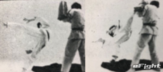 1983年発行の技術書「実戦!芦原カラテ」に掲載予定だったが、基礎編ということもあり、最終的に省いた二宮城光が演じる胴回し回転蹴り