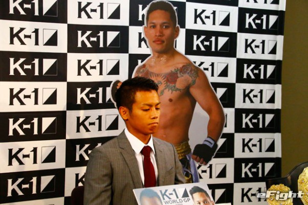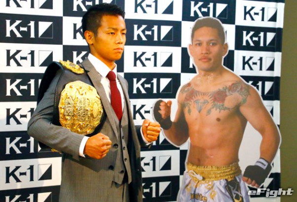 今年4月のK-1で武尊(右)と打ち合うサラビア(左)