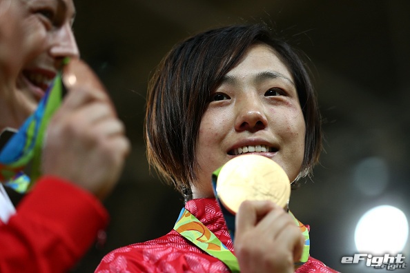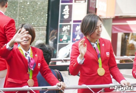 2016年10月、銀座にてリオ五輪メダリストパレードでの田知本遥(右)