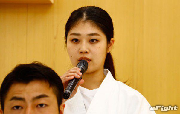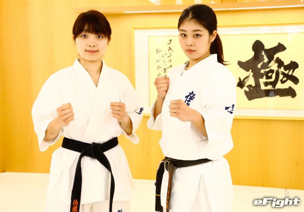 全日本軽量級王者の佐藤七海(左)と重量級王者の小田幸奈