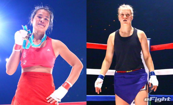ミャンマーでは戦うアイドルとして人気があるというブロニカ(左)と、SEI☆ZA最強女子ユリア(右)が激突