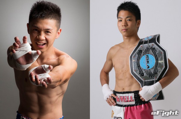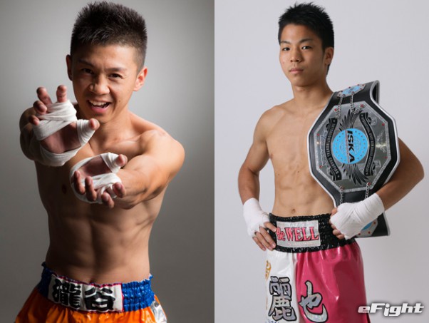 元Krush-55kg王者・瀧谷渉太(左)とISKAインターコンチネンタルフライ級王者・麗也(右)が対戦