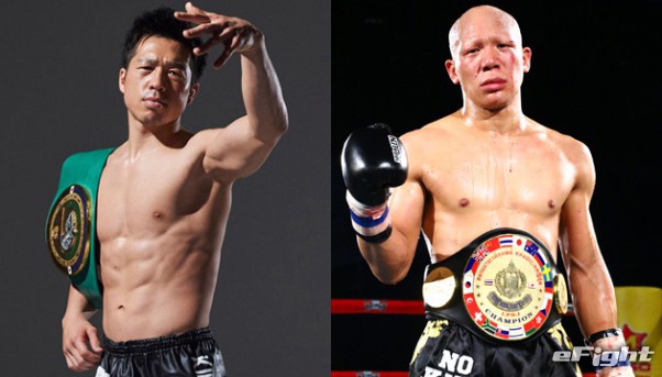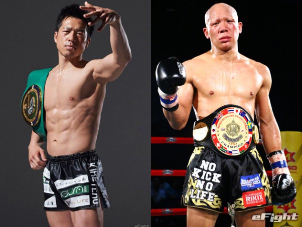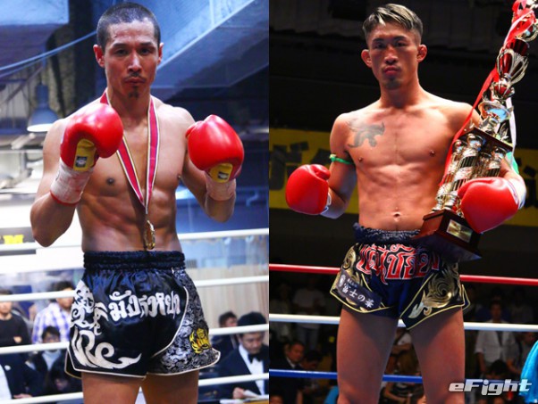 INNOVATIONライト級王座決定戦で対戦する 櫻井健(左)と翔センチャイジム(右)