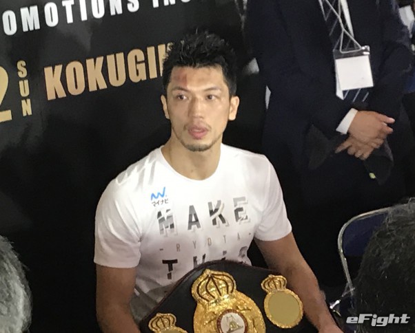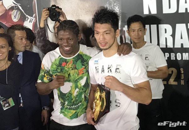 試合後の村田の会見中に、エンダムが現れ、新王者の村田を称えた