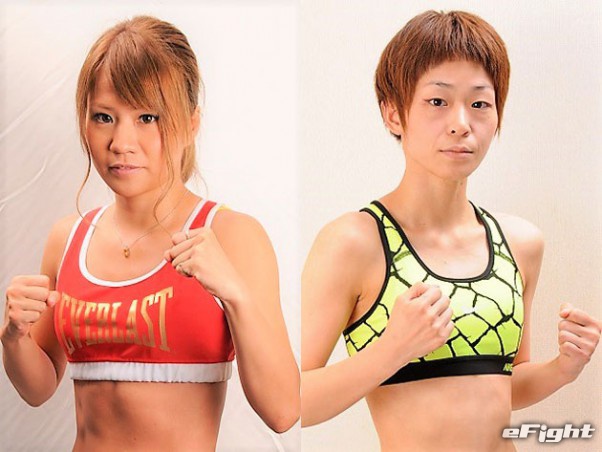 女子格闘技界のミスフォトジェニック桐生(左)と、前髪切りすぎてしまった系ファイター北野(右)が対戦