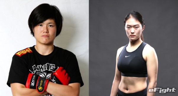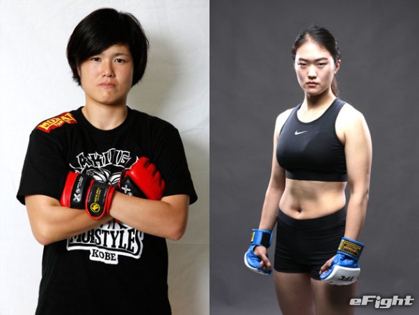 女子柔道からMMAに転向し、今回がデビュー戦となる東(左)と対戦相手のキム