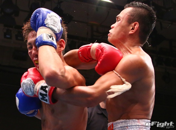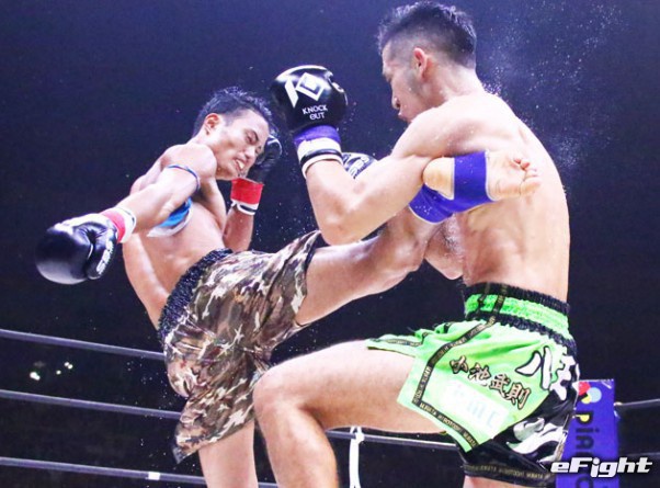 蹴り技を得意とする重森(左)。8月大会ではTKO勝ちを収めている