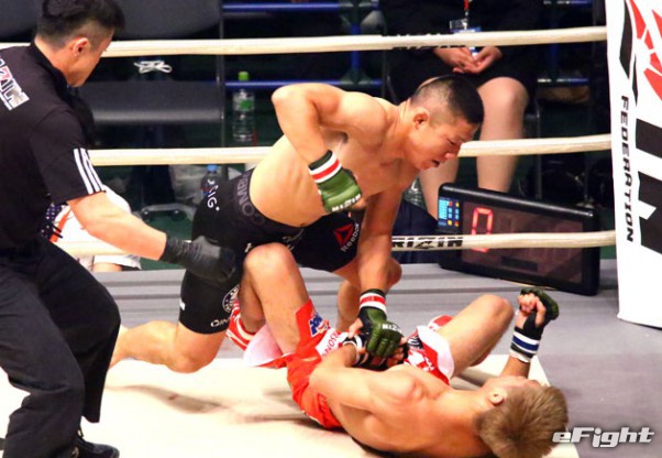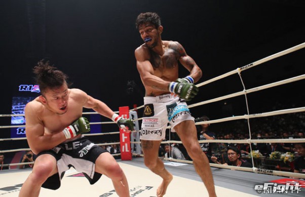 10月大会で、堀口と戦うためにフェザー級から体重を落としてきた川尻(左)をKOしたガブリエル