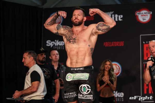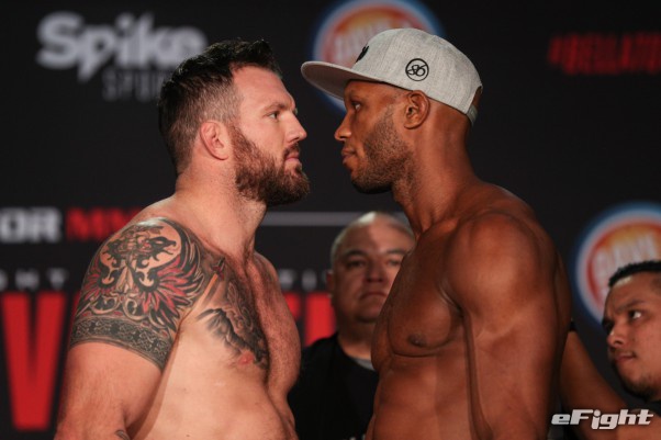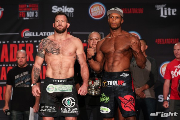 初防衛戦のライトヘビー級王者ベイダー(左)と挑戦者ヴァッセル(右)