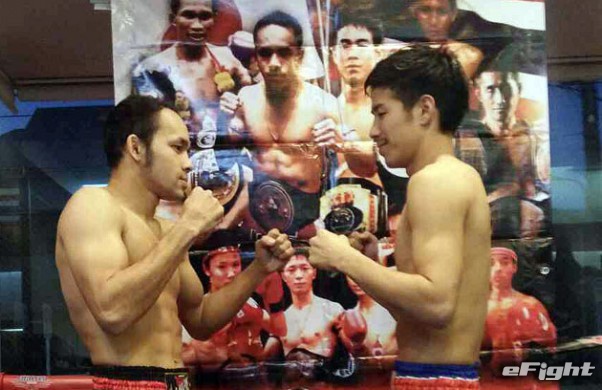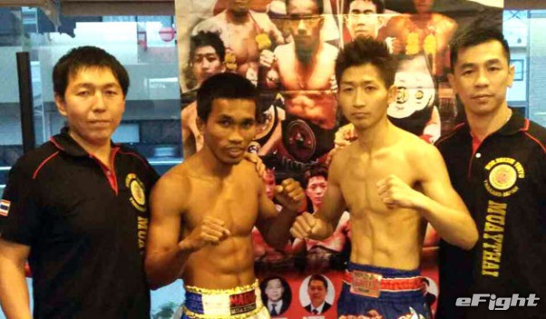 メインで対戦する元ルンピニースタジアム認定バンタム級王者ルンペット(左)とWMC日本フェザー級王者ユウ(右)