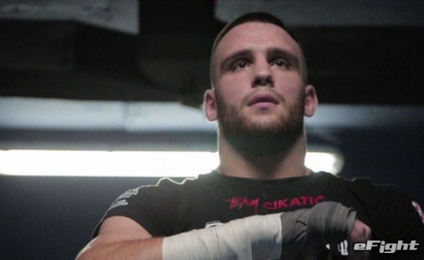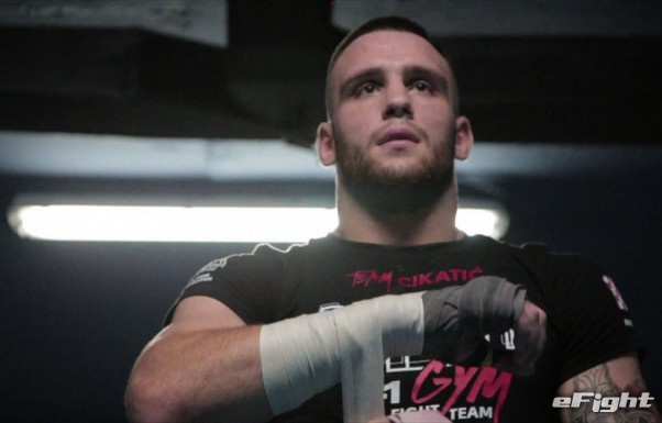 対戦相手は、中量級あがりのスピードを生かし、ヘビー級でも活躍するK-Jee(右)