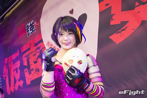 オープンフィンガーグローブを着けた川村。前代未聞の現役アイドルの挑戦やいかに