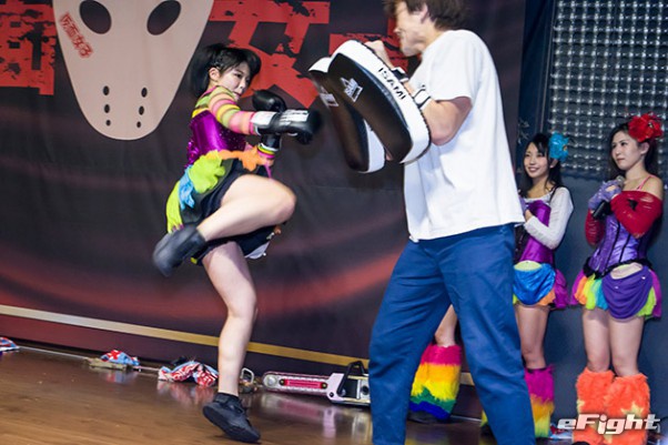 MMA挑戦をステージ上で発表し、ミット打ちを披露した川村