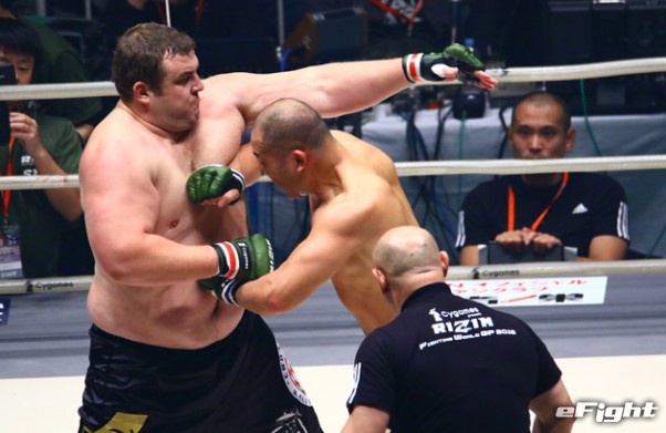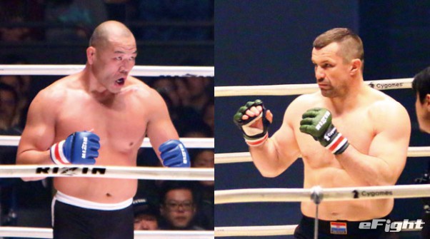 日本人ヘビー級のパイオニア高阪(左)がミルコ(右)に挑む