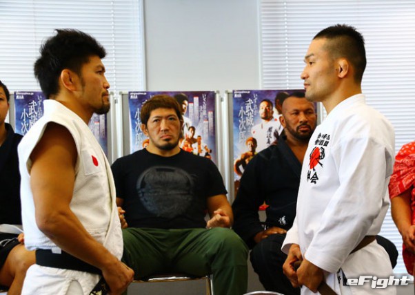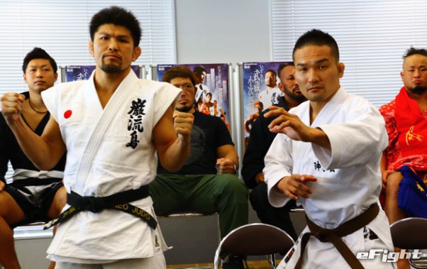 今や巌流島を代表するエース格である柔道・小見川(左)と沖縄拳法空手・菊野(右)が再戦